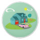 Retro Suburban House Ceramic Pull