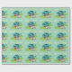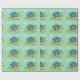 This Retro Suburban House Wrapping Paper pattern features a typical American home in a typical American neighbourhood, circa 1950. A teal home with a peacock blue roof, and turquoise windows are perfectly offset by a vibrant red front door and garage door. A classic pink, 1950’s finned convertible car is parked on the picturesque driveway. Kitschy, plastic, pink flamingos look right at home on the boomerang shape of freshly mowed green grass resting on a jade background. The manicured lawn is landscaped with whimsical trees. Kidney bean shaped clouds and a yellow sunburst of a sun let you know it’s just another glorious day in mid century modern suburbia.