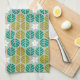 Retro Summer green & pink floral striped kitchen towel