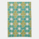 Retro Summer green & pink floral striped Tea Towel