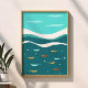 Retro Summer Ocean Waves Mid Century Modern Poster