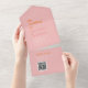 This retro summer pink and orange wedding all in one invitation is perfect for a colourful wedding. The unique modern vintage design features a blush pink, bright orange and vibrant hot pink colour palette with fun tropical beach vibes. Hand write your guest addresses on the back of the folded invitation, or purchase coordinating guest address label stickers (sold separately).