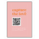 This retro summer pink and orange capture the love sign is perfect for a colourful wedding. The unique modern vintage design features a blush pink, bright orange and vibrant hot pink colour palette with fun tropical beach vibes. The card prints on the front and back (double-sided). Enter the website that you'd like the QR code to link to and the QR code will auto update.
