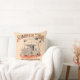 Retro Summer Time Beach Hut Illustration Throw Pillow. A vintage-style design featuring an illustration of a beach lifeguard station with a bold, retro font in orange and yellow. The background is a pale peach, complementing the minimal design. The reverse side of the pillow has a pale blue background. Personalise the throw pillow with your family name and year of establishment and you'll have a wonderful decorative piece for your beach or lake house.