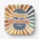 Retro Sun Groovy Wave Happy Birthday Paper Plate