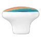 Retro style sun rays geometric pattern illustration with yellow, orange, blue and turquoise stripes decoration