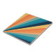 Retro style sun rays geometric pattern illustration with yellow, orange, blue and turquoise stripes decoration