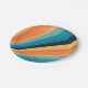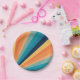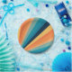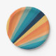 Retro style sun rays geometric pattern illustration with yellow, orange, blue and turquoise stripes decoration