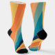 Retro style sun rays geometric pattern illustration with yellow, orange, blue and turquoise stripes decoration