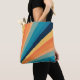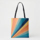 Retro style sun rays geometric pattern illustration with yellow, orange, blue and turquoise stripes decoration