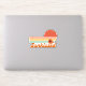 Retro, seventies inspired sticker in burnt orange, with the words sunkissed and retro sun