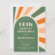 Green, orange and peach retro sunshine arch frame typography birthday invitation.