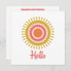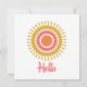 This design features a Retro Sunburst Flat Note Card in Red, Orange and Gold with a matching whimsical font that says: Hello. This note card is ideal for saying hello to friends and family or to send a short note to stay in touch. The backside of this card can be personalised with your name or with someone else's name and given as a gift. Sunbursts are an iconic design motif that conveys positive energy and a feeling of renewal. This sunburst design is also available in additional colour variations and additional products, please visit our store to see additional details. Optional white envelopes are also available.