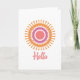 This design features a colourful Retro Sunburst in orange and violet with a matching whimsical font that says: Hello. This folded note card is ideal for saying hello to friends and family or to send a short note to stay in touch. It's available as a standard 5 inch x 7 inch card or in a smaller 4 inch x 5.6 inch size and can be applied to either horizontal or vertical orientations. This design can be scaled smaller for additional customisation and personalisation. The inside of this card is left blank, so there's plenty of room to write a detailed note, or to customise it further to your needs. Sunbursts are an iconic design motif that conveys positive energy and a feeling of renewal. This sunburst design is also available in additional colour variations and additional products, please visit our store to see additional details. Optional white envelopes are also available.