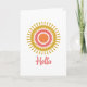 This design features a colourful Retro Sunburst in red, orange and gold with a matching whimsical font that says: Hello. This folded note card is ideal for saying hello to friends and family or to send a short note to stay in touch. It's available as a standard 5 inch x 7 inch card or in a smaller 4 inch x 5.6 inch size and can be applied to either horizontal or vertical orientations. This design can be scaled smaller for additional customisation and personalisation. The inside of this card is left blank, so there's plenty of room to write a detailed note, or to customise it further to your needs. Sunbursts are an iconic design motif that conveys positive energy and a feeling of renewal. This sunburst design is also available in additional colour variations and additional products, please visit our store to see additional details. Optional white envelopes are also available.
