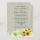 This popular design features a faux wood background accented by yellow sunflowers and funky retro inspired swirls. There is plenty of customisable text for you to add your personalised party information. Shown here as a formal wedding invitation, this versatile design can be customised as a birthday invitation, anniversary party invitation, shower invitation or even a graduation announcement or party invitation! The flip side of this elegant design has the same graphic. Please note: This is a printed design which has been intentionally created to provide a three dimensional affect. Buy in bulk for that special celebration.