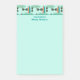 This sticky note pad features a pattern inspired by summertime at the beach with retro style sunglasses and surfboards in cool colours of teal and green with orange. Text is easily personalised.