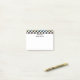 A cool pattern made up of retro 1970’s design inspired sunglasses in primary colours of red, blue and yellow with black accents embellishes the top edge of this personalised pad of sticky notes.