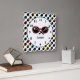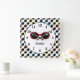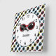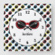 This wall clock available in round or square shapes features a lively pattern made up of retro 1970’s design inspired sunglasses in primary colours of red, blue and yellow with black accents along with a single red sunglasses graphic and text that makes it easy to add a name.