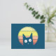 Retro Sunset Cat Postcard