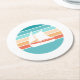 Retro Sunset Distressed Effect + Sailboat Round Paper Coaster