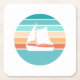 Retro Sunset Distressed Effect + Sailboat Square Paper Coaster