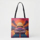 This eye-catching tote bag features a retro sunset with a classic car cruising down a palm-lined road. Perfect for car lovers and those who appreciate vintage vibes, this design brings a nostalgic feel to your everyday style.