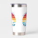Get personalised thermal tumblers for the whole family for your next cruise or beach vacation. The nautical design features a stylised ship’s wheel with ocean wave on a retro sunset background.
