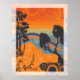 This poster showcases a retro sunset forest landscape design with bold tree silhouettes and vibrant orange and blue tones. The abstract art style blends modern boho with vintage flair, making it a striking piece for home, office, or studio decor. Perfect for adding colour and creativity to any wall, this nature-inspired artwork is ideal for art lovers and those who enjoy unique, eye-catching prints.
