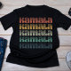 Make a bold statement with this vintage-inspired Kamala 2024 T-shirt. Featuring a multi-coloured gradient design that spells out "Kamala" in bold letters, this T-shirt is perfect for showcasing your support in style. The sunset colour palette transitions from warm reds and yellows to cool blues, giving this shirt a unique retro aesthetic. Ideal for rallies, events, or casual wear, this design blends politics with fashion for a standout look.