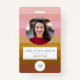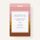 This eye-catching badge design features warm horizontal stripes in sunset shades of pink, orange, and brown, with space for a photo, name, title, and logo. Ideal for events, conferences, or office wear, it combines personality and professionalism in one bold, stylish layout.
