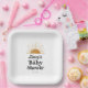 Baby Shower party plates featuring a half sun with rays. Customise with your information for the mum to be. Click "click to customise further" to change the font style, size or colour.