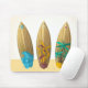 A design of three retro wooden surfboards standing together on the sand. The surfboard designs include blue waves, dolphins and palm trees. This design is cool, hip and perfect for lovers of the beach, Summer and surf lifestyle.