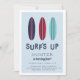 Cute summer birthday party invitations for your little guy's surf themed or beachside bash feature a trio of vintage surfboard illustrations in navy, red and aqua. "Surf's up" appears in retro lettering, with your birthday party details beneath.