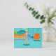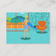 Every day can be a day at the beach with these Customisable Retro Surfer Dude Business Cards. The 1960's style, minimalist art design features a sun-kissed, blonde, surfer dude all ready to catch a wave. Our fit surfer is gazing out on the ocean through the sliding glass doors of his beachfront home. He is standing in his aqua coloured living room. We can see an aqua and turquoise, stone wall and mid century modern, orange chair. On the opposite side of the glass door, we can see a patio. Beyond that, there is a golden, sandy beach, swaying palm tree, sparkling, peacock blue ocean, and an aqua sky. In the distance, we can see a teal volcanic island, which is dormant for the time being. Surfer Dude is holding a blue surfboard and wearing blue, tiki patterned board shorts. The opposite side of these fun business cards is all ready for your personalised contact information. Catch some waves and share some love with this kitschy summer design!