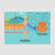 Every day can be a day at the beach with this Retro Surfer Dude Tissue Paper. The 1960's style, minimalist art design features a sun-kissed, blonde, surfer dude all ready to catch a wave. Our fit surfer is gazing out on the ocean through the sliding glass doors of his beachfront home. He is standing in his aqua coloured living room. We can see an aqua and turquoise, stone wall and mid century modern, orange chair. On the opposite side of the glass door, we can see a patio. Beyond that, there is a golden, sandy beach, swaying palm tree, sparkling, peacock blue ocean, and an aqua sky. In the distance, we can see a teal volcanic island, which is dormant for the time being. Surfer Dude is holding a blue surfboard and wearing blue, tiki patterned board shorts. Catch some waves and share some love with this kitschy summer design!