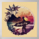 This poster is perfect for a surfer. It is in a retro style featuring a beach scene at sunset of a surfer with surfboard in the foreground. The text on the surfboard is customisable with your own, a name or can be left as is.
