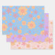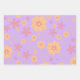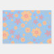 Retro Sweet Floral Pattern Wrapping Paper Sheets. The mix and match of soft blue colour with other sweet calming soft colours of purple and pink, perfect for those who are girly and feminine. Pretty and romantic with the retro orange colour flowers pattern.