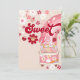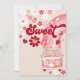 Celebrate your little ones first birthday in groovy style with this retro "Sweet One- invitation. Featuring a cheerful pink van decorated with flowers, peace signs, and rainbow accents, this playful design is surrounded by daisies, hearts, strawberries, and musical notes for a whimsical 1960s vibe. Perfect for a fun and colourful milestone party, this invitation blends nostalgia with modern charm to delight guests. Customise easily for your event and make your celebration unforgettable with this vibrant retro theme.