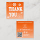 Trendy retro boho orange earth tone neutral ombre gradient holographic retro script order thank you square business card. the colours are editable. add your logo, Qr code and social media.