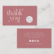 Simple small business insert card featuring a swirly retro text that says "thank you." You can add your logo and a simple message on the back along with your social media and website information. The colour is in dusty rose.