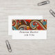 Modern but with retro feel - swirls pattern in muted browns blues yellows and reds.