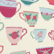 Pretty retro tea cups in pastel pink, blue, green and red on a warm cream background. Original art by Nic Squirrell. Perfect for your kitchen, dining area, restaurant, tea room or cafe.
