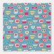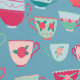 Pretty retro tea cups in pastel pink, blue, green and red on a teal blue background. Original art by Nic Squirrell. Perfect for your kitchen, dining area, restaurant, tea room or cafe.