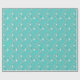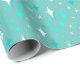 Wrapping paper with a retro atomic star pattern in teal and white on a light teal background.