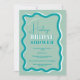 Retro teal blue curve squiggle wavy bridal shower invitation