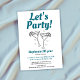 Retro meets celebration with this 50th birthday party invitation. Designed with “Let’s Party” in a retro font, two outlined cocktail glasses toasting with hearts, and elegant serif party details in teal and black on a white background, it’s the perfect invite for a fun and stylish milestone birthday. The back features the same retro cocktail design for a cohesive look. All text is fully customisable.
