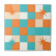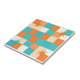Retro Teal Orange Starburst Checkerboard Ceramic Tile
