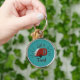 The retro design on this key chain is reminiscent of the print advertisements from the 50’s and early 60’s with a teardrop camper in vintage red and silver and the phrase “Let’s travel!” From my original digitally created image.