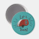 The retro design on this magnet is reminiscent of the print advertisements from the 50’s and early 60’s with a teardrop camper in vintage red and silver and the phrase “Let’s travel!” From my original digitally created image.